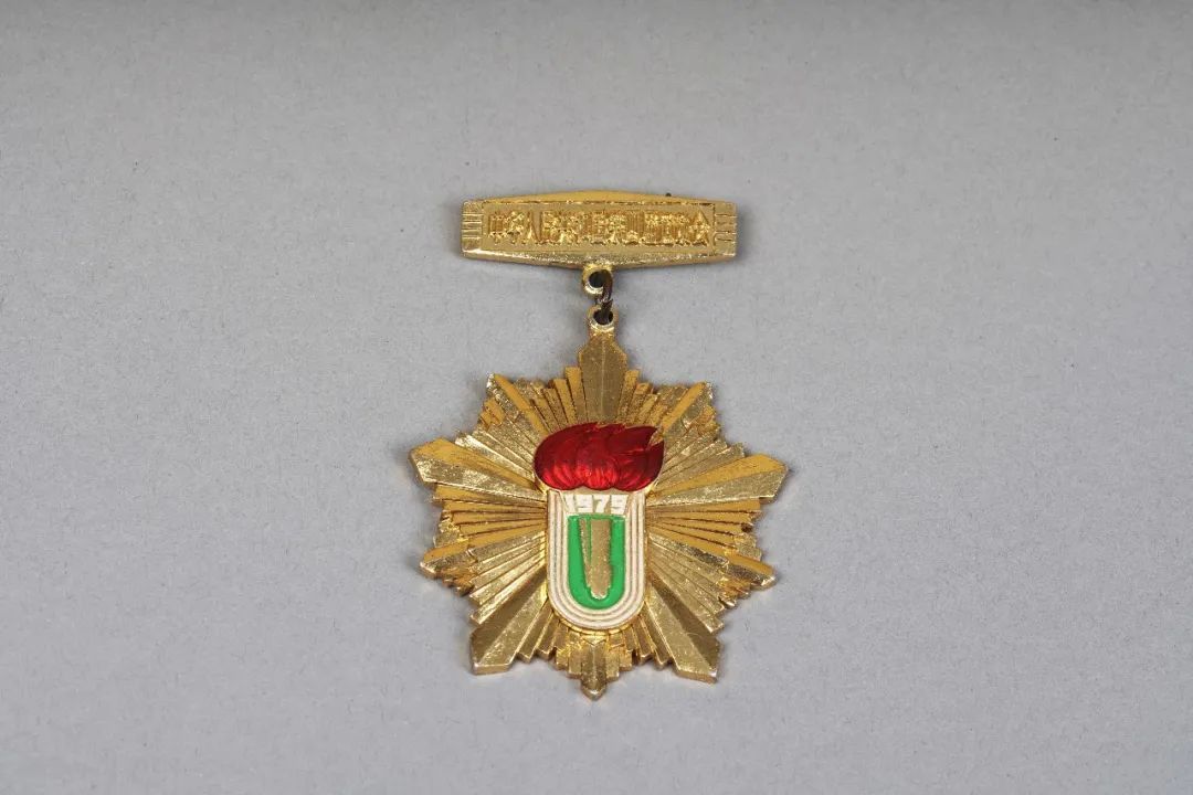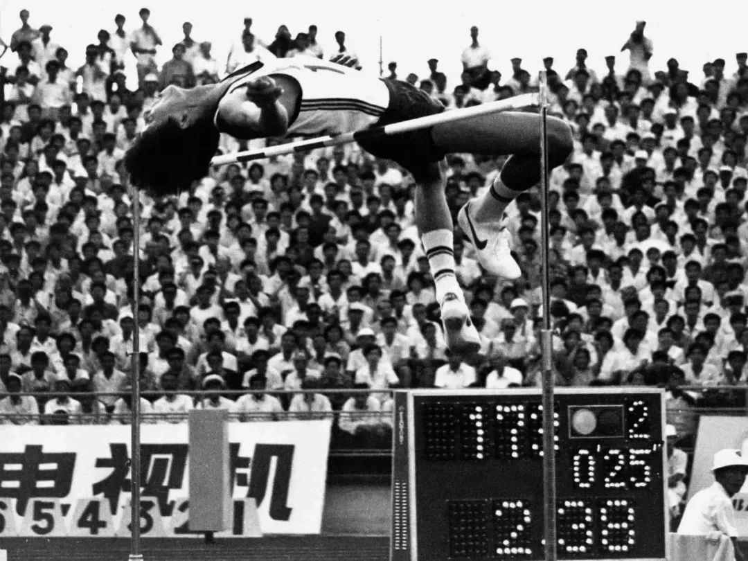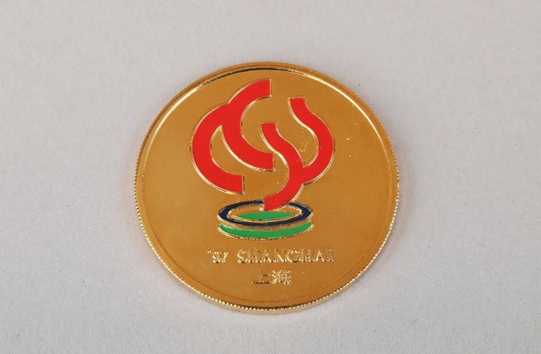 为纪念五运会上朱建华打破男子跳高世界纪录而制作的金色运动鞋