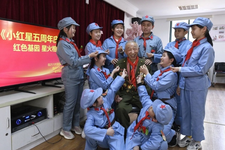 “小红星”队伍成立后,沈老师当仁不让担任了指导员,动员教师联谊会成员、小区骨干党员担任红色辅导员。时隔30年,耄耋之年的沈老师带领着小红星们,再次走进南京路上好八连与部队共建,让部队官兵备受感动。