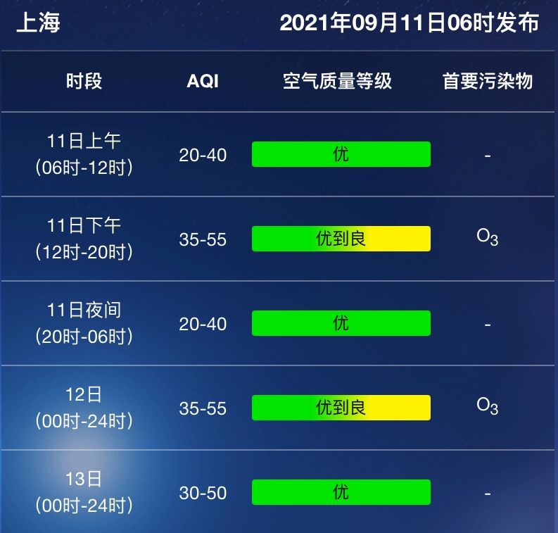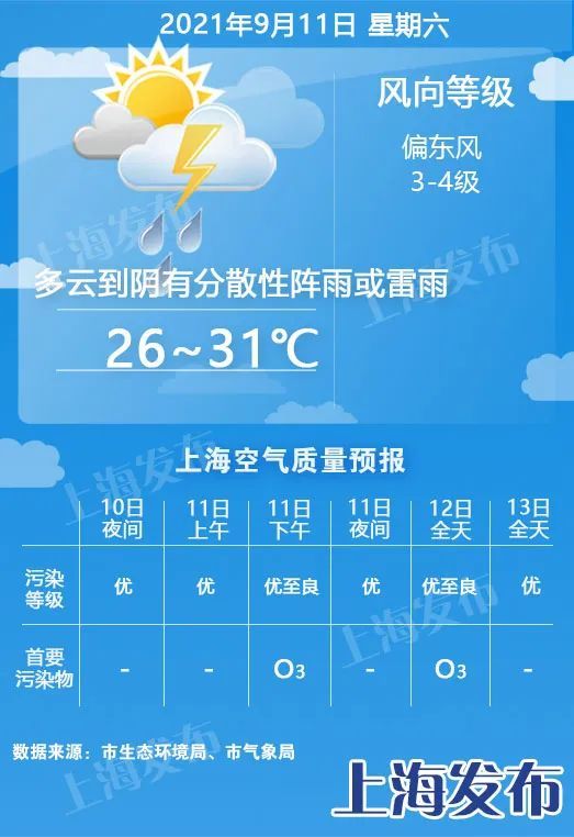 上海今天(9月11日)早晨多云