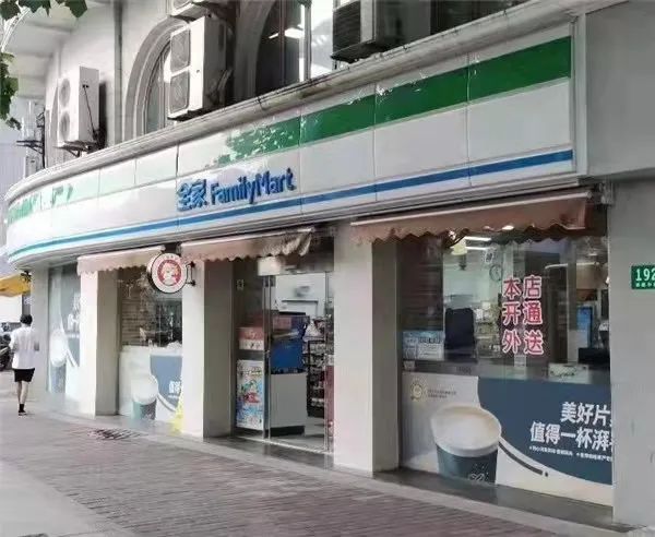 全家便利店门口悬挂的有“四大金刚”logo的“上海早餐”标识。