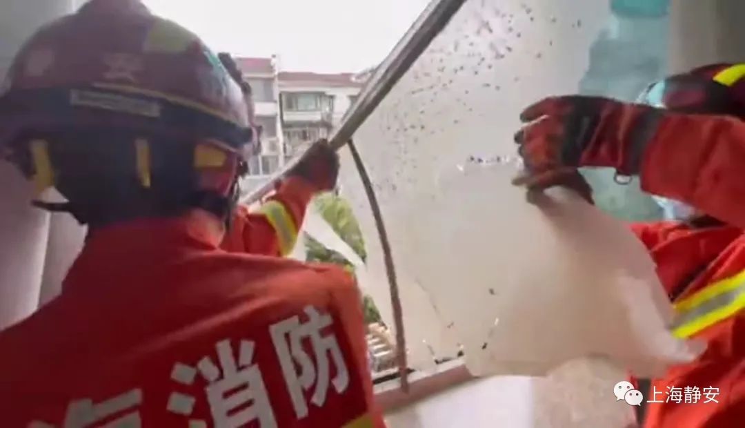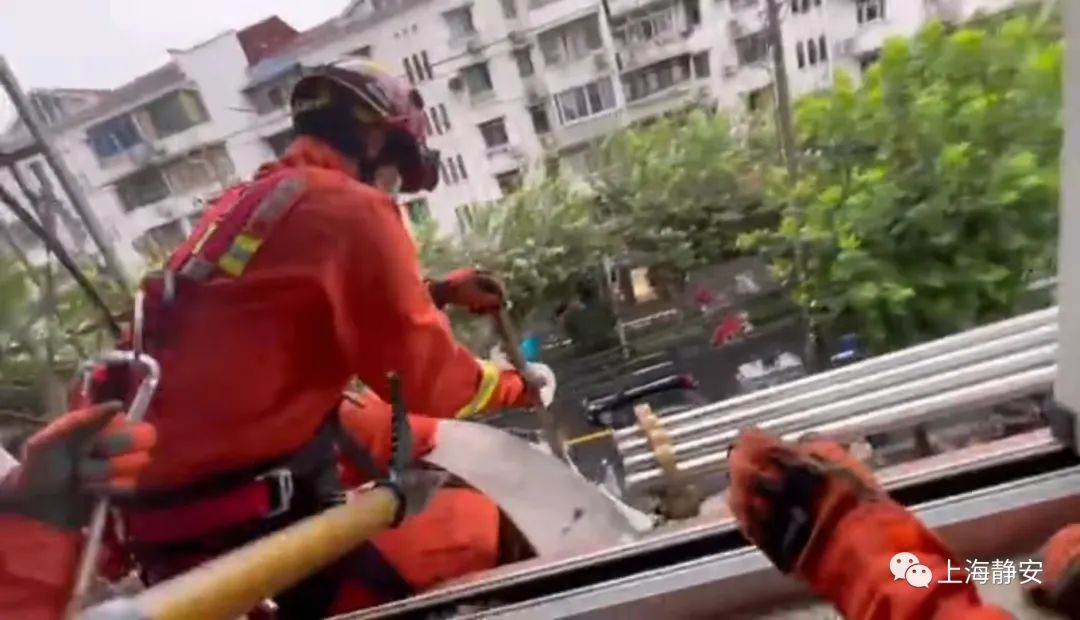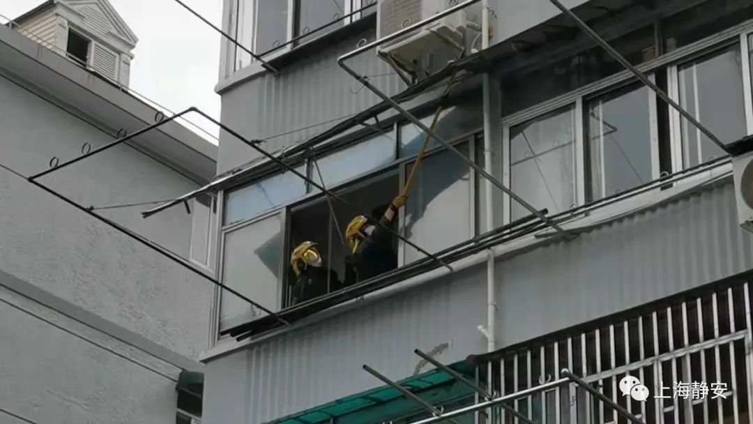 静安消防救援支队静安站消防员到达现场后,立即展开处置。指战员首先在楼下做好了警戒,提醒楼下居民注意安全。