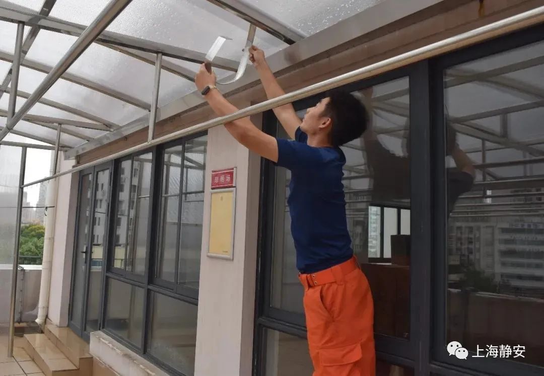 昨晚9点多,随着风雨加大,家住延长路的一户居民报警,称家中雨棚出现脱落的情况,随时有坠落的危险。
