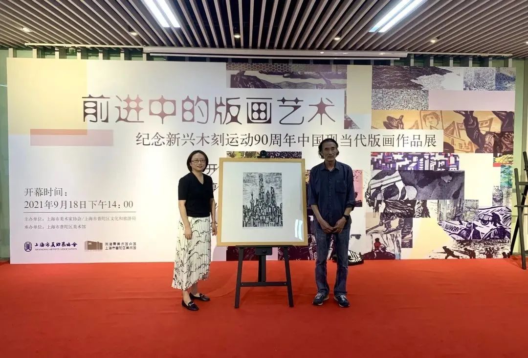 由上海市美术家协会、上海市普陀区文化和旅游局共同主办,上海市普陀区美术馆(刘海粟美术馆铜川路分馆)承办的“前进中的版画艺术—纪念新兴木刻运动90周年版画作品展”于2021年9月18日下午在上海市普陀区美术馆(刘海粟美术馆分馆)开幕。上海市文联副主席、上海市美术家协会主席郑辛遥,上海市美术家协会秘书长丁设,上海市普陀区文化和旅游局副局长刘亦武,上海市美术家协会版画艺术委员会主任沈雪江,上海市普陀区美术馆副馆长钱蓉等参观展览。