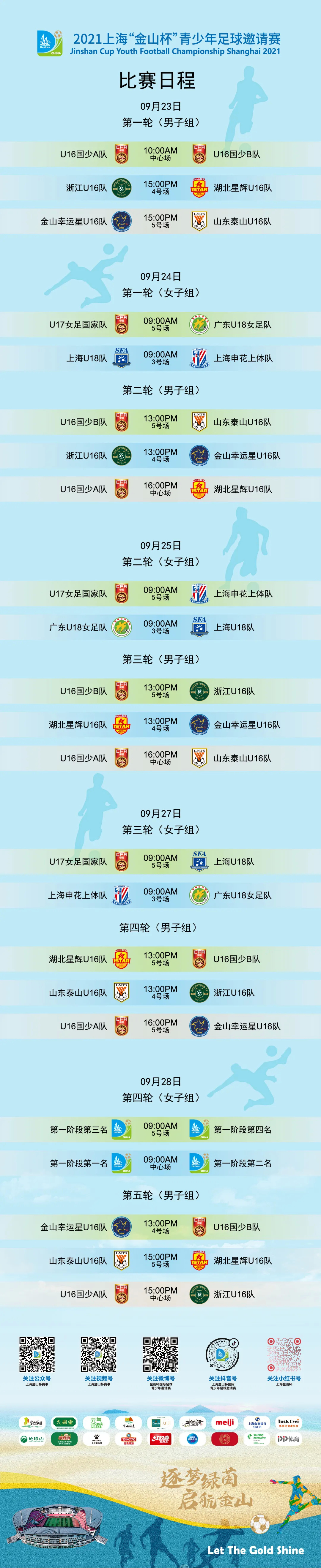 根据赛程安排,9月23日上午10点,2021上海“金山杯”将正式开赛,揭幕战将由男子u16国少a队和u16国少b队之间展开强强对决。