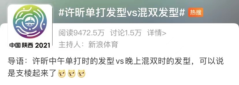 早在22日晚,许昕混双半决赛时的发型就因和中午单打时不一样而冲上热搜。