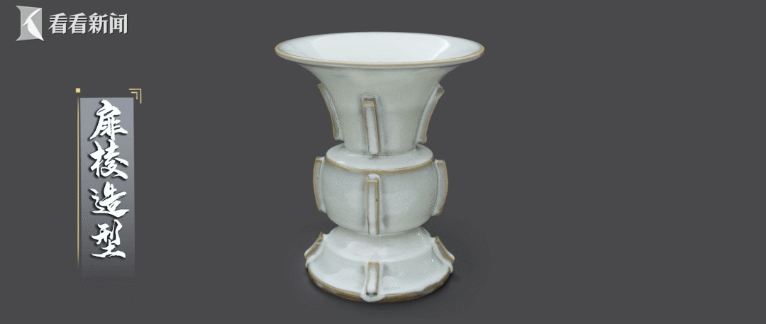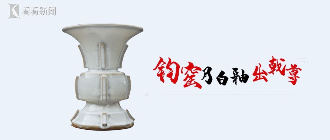 这是一件钧窑瓷器,却仿佛来自遥远的青铜时代,它又美又飒,身披扉棱,酷似商代晚期的青铜酒器——鸟父癸尊,周身笼罩着一层蓝色乳光,神秘高洁宛如月色,这种极美的釉色被称为“月白釉”。