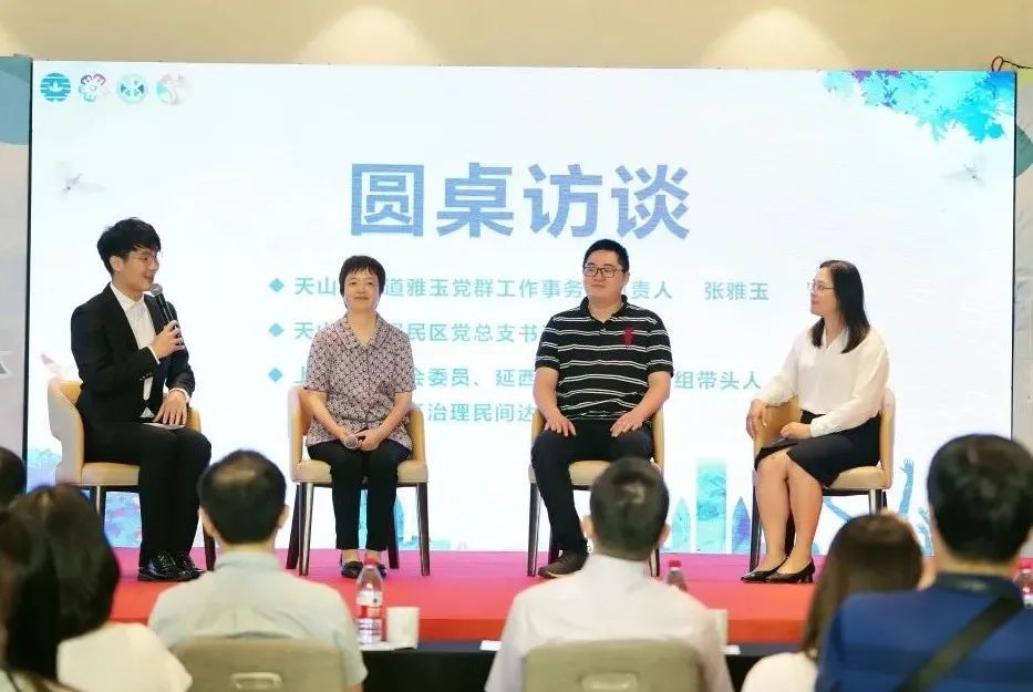为了更加生动、全面地展现天山路街道社区治理成果,现场还邀请了不少社会组织和社区代表畅谈经验做法。天山路街道雅玉党群事务所主任张雅玉分享了“养犬管理培训与指导自治”项目推行以来,街道从养犬问题多发到如今“零投诉”的历程;天山二村居民区党总支书记张恩杰介绍了全民协商共治打造的“时光乐园”;延西居民区“妇女之家”法律维权自治小组带头人龚英,则讲述了在调解、咨询和普法宣传过程中发生的故事。