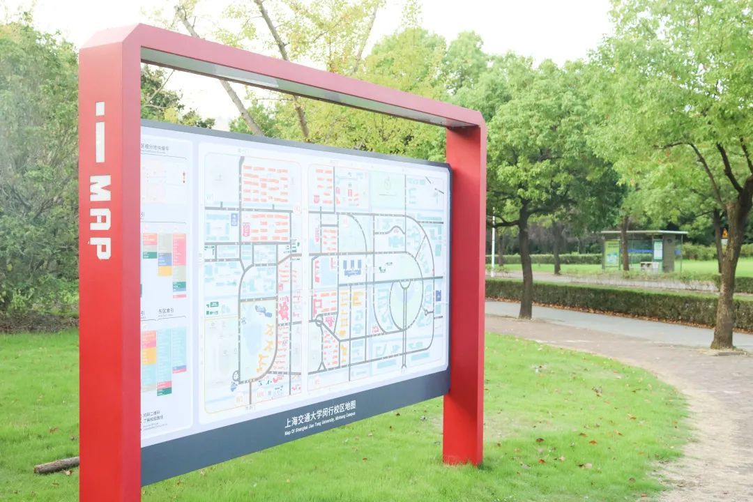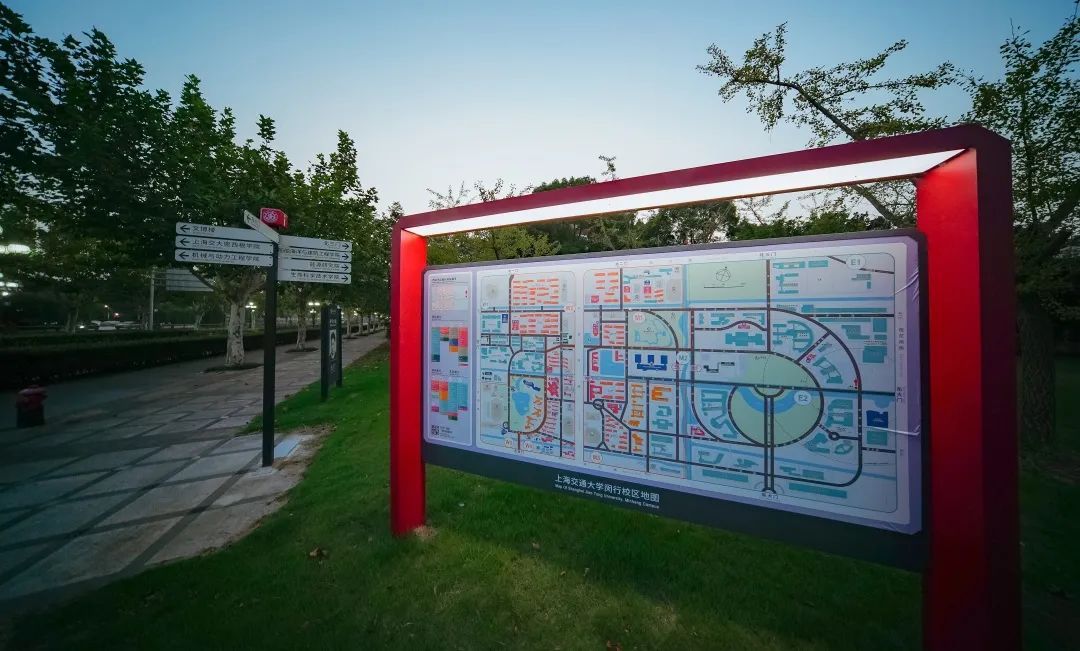 基于此,学校启动了闵行校区的导视标识系统建设项目,由学校党委宣传部文明办牵头,后勤保障中心负责实施,在对校园原有标识牌进行细致排查的同时,探索适合交大的户外导视新体系。建设项目在2018年底立项,2019年4月开始设计、反复打磨、广泛论证,2020年底确定设计方案并开始施工,2021年9月落成,闵行校区导视标识系统更新改造工作全部完成。