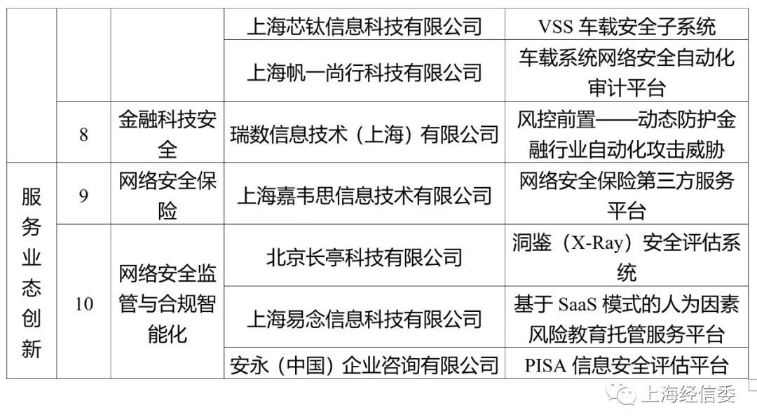 为推进本市网络安全产业发展,建设网络安全产业创新高地,根据《上海市经济信息化委关于开展2021年网络安全产业创新攻关目录成果征集工作的通知》(沪经信软〔2021〕543号),市经济信息化委组织开展了2021年度上海市网络安全产业创新攻关目录成果申报和评审工作,共评定20项创新攻关成果,现将《2021年上海市网络安全产业创新攻关成果目录》予以发布。