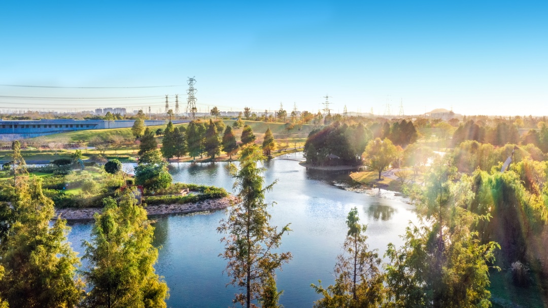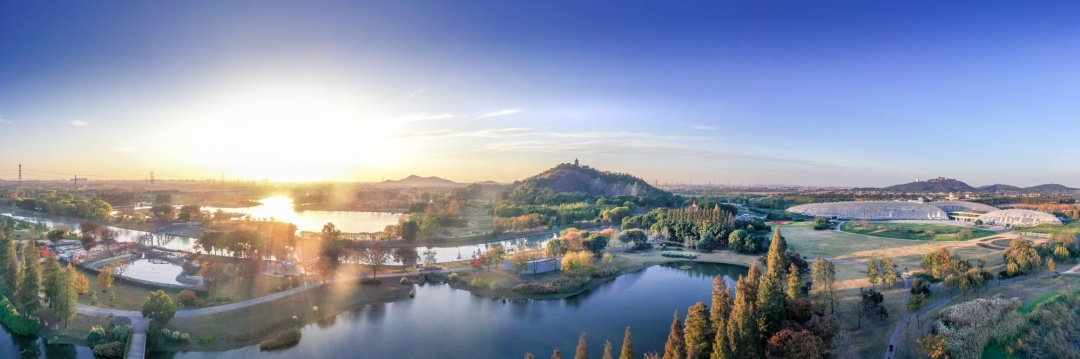 而辰山植物园里,更像是秋天打翻了调色盘。翡翠般的镜湖,点缀着秋天的各种颜色。红黄蓝绿的乌桕小径,天上有飞鸟与彩霞。