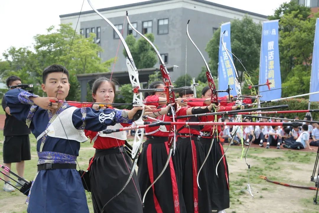 “射”是射箭。学校在学生中开展了中华传统射箭项目的推广。射箭要求人沉静、专注、大胆、心细。孩子们从六年级开始学习射箭,经过几个学期的练习,不少孩子渐渐变得沉稳、细心,专注力增强,听课、写作业效率都提升了不少。
