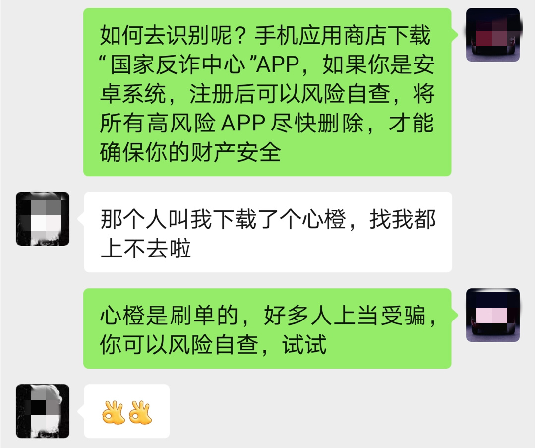 两人互加好友后,社区民警通过微信对张先生进行了视频宣传,明确告知他刷单都是诈骗,不要贪图利益,不要向陌生人转账,不要点击或下载陌生链接、客户端等。张先生恍然大悟,随即删除了“心橙”客户端。