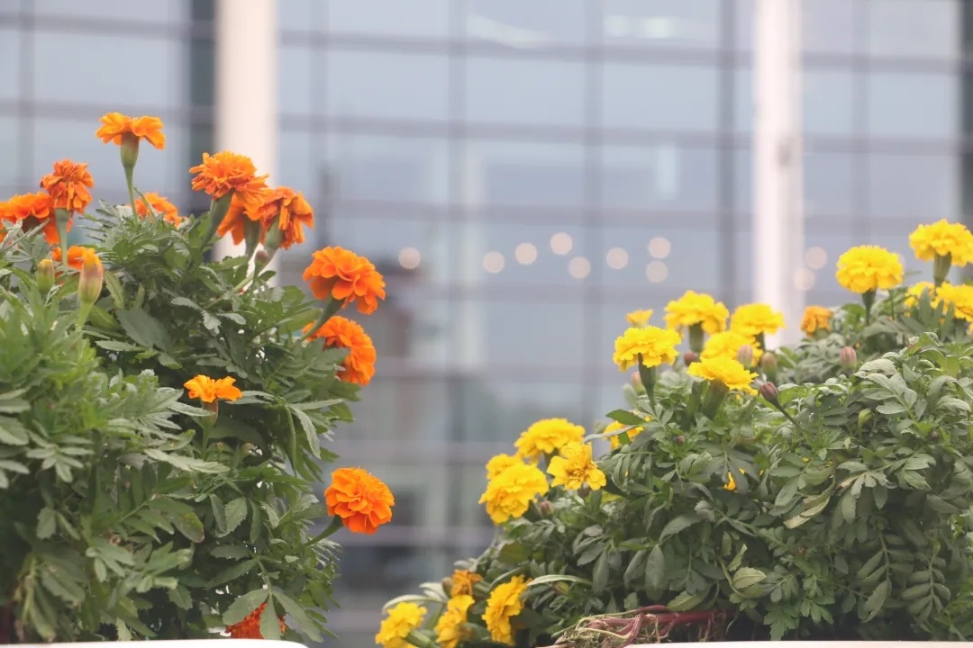 橙色孔雀草+黄色孔雀草组合↑