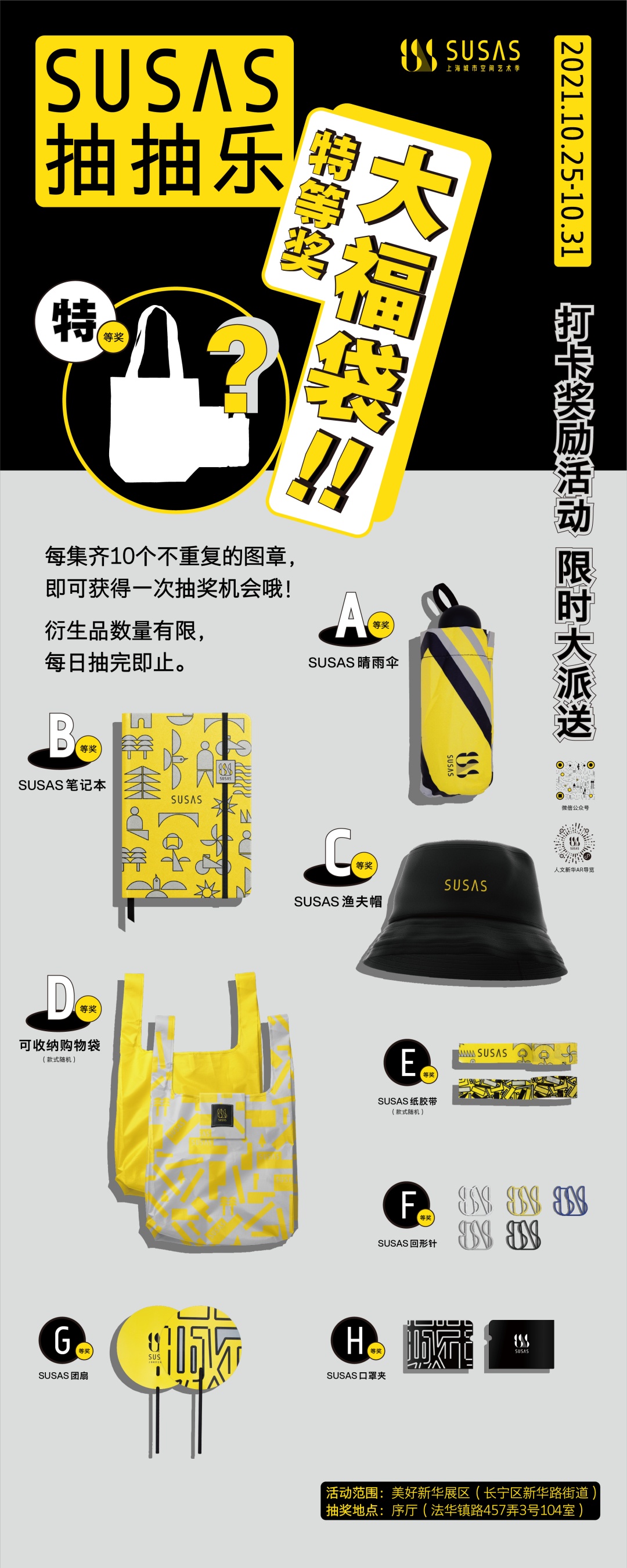 为了感谢参观者们的辛苦打卡,我们的主视觉设计团队创作了很多种类的susas周边,好看又好用。从a等到h等,更有惊喜大福袋,是不是觉得hin丰富?
