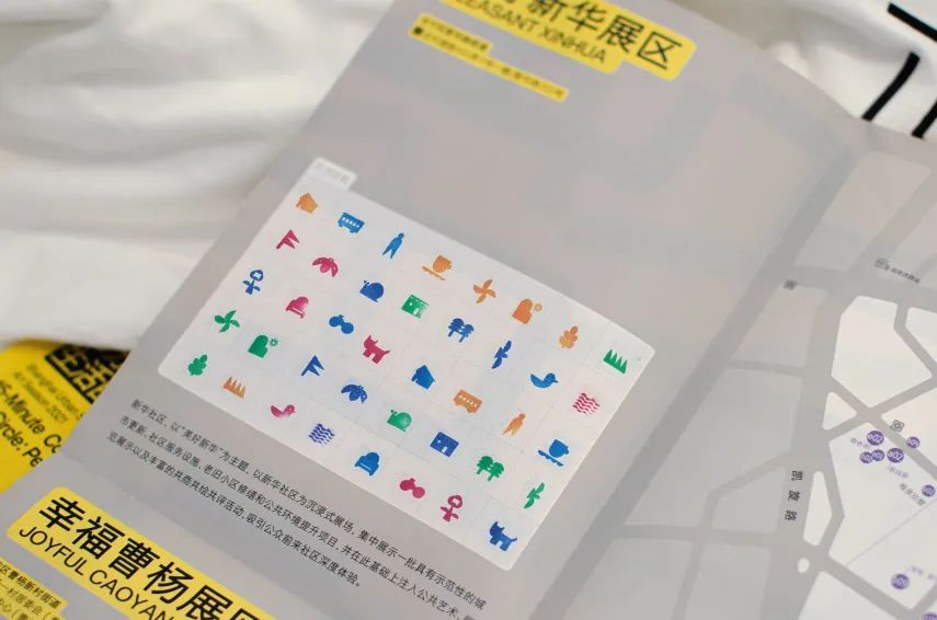地图内容涵盖主题演绎展区、新华社区、曹杨社区的简介和点位信息,方便查阅,易折叠随身携带,一“本”玩转整个艺术季展区。