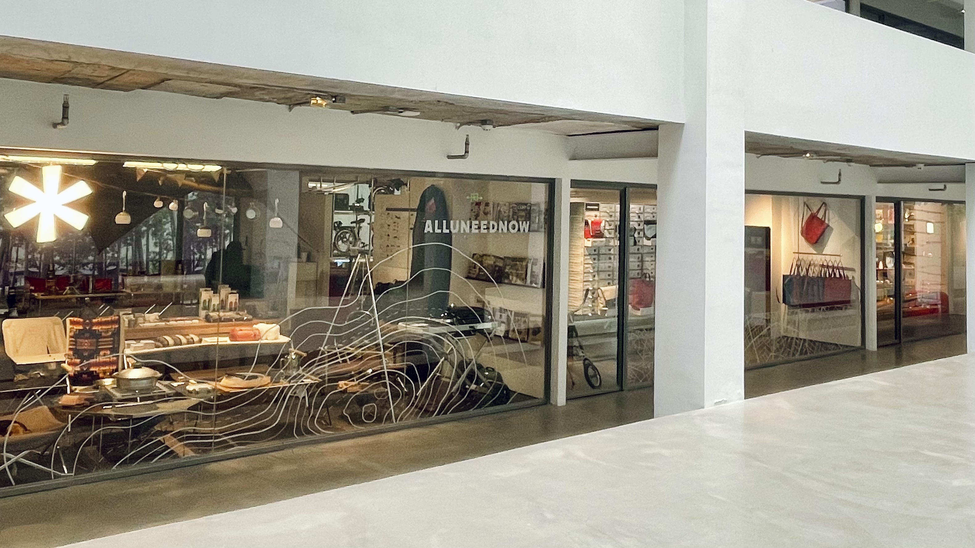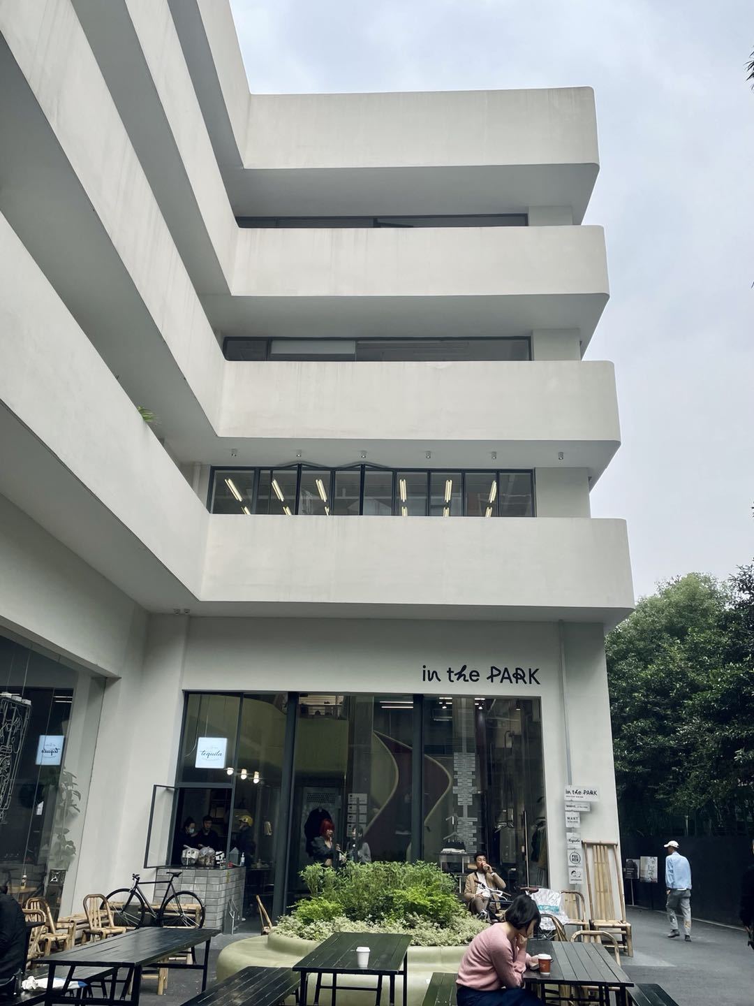 位于静安区延平路98-1号的现所,是由一座老厂房改造而成的创意园区,纯白的建筑配着极简的几何线条,偶尔能窥见一角老厂房的斑驳痕迹。主体建筑共五层,总面积约7000平方米,融办公、商店、餐饮、文艺展览与活动于一体,一、二层是对外开放的零售店铺,三到五层是办公室、工作室和展览空间。