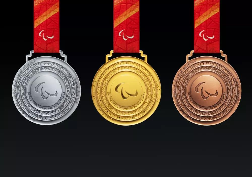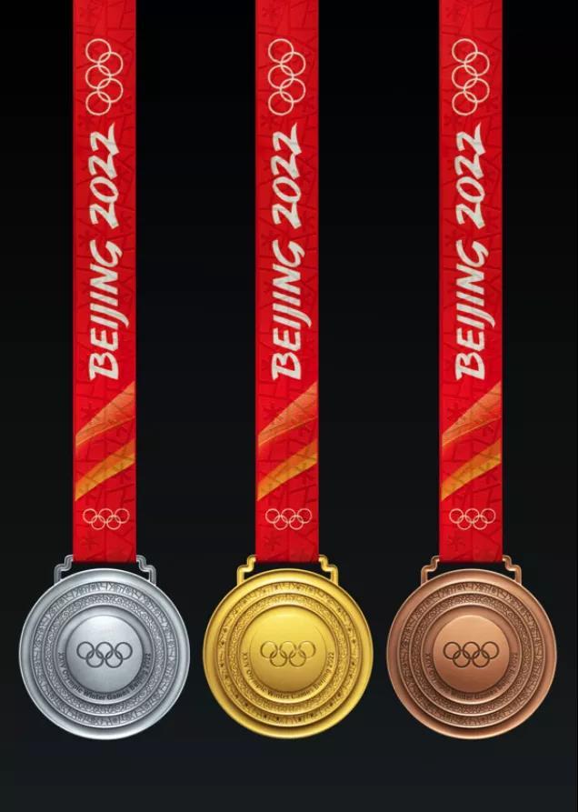 奖牌由圆环加圆心构成,形象来源于中国古代同心圆玉璧。奖牌共设五环,五环同心,同心归圆,表达了“天地合·人心同”的中华文化内涵,也象征全世界人民在奥林匹克精神的感召下,团结一心,共享冬奥盛事。