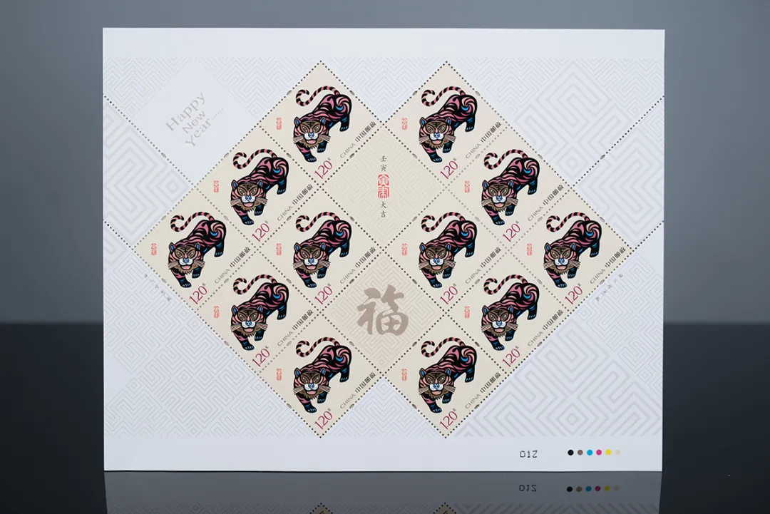 中国传统吉祥文化中,虎具有王者风范,被民间视为神兽,是勇气和力量的象征。张国藩先生,中央工艺美术学院(现清华大学美术学院)教授,是1986年第一轮生肖“虎”邮票《丙寅年》的设计者。时隔36年后,张国藩先生与“虎”邮票再度结缘,将中国传统艺术与当代审美意趣相结合,再绘“壬寅虎”经典佳作。