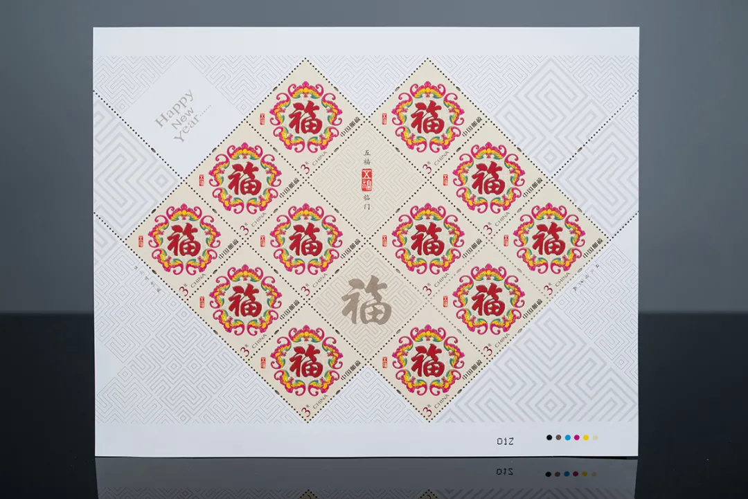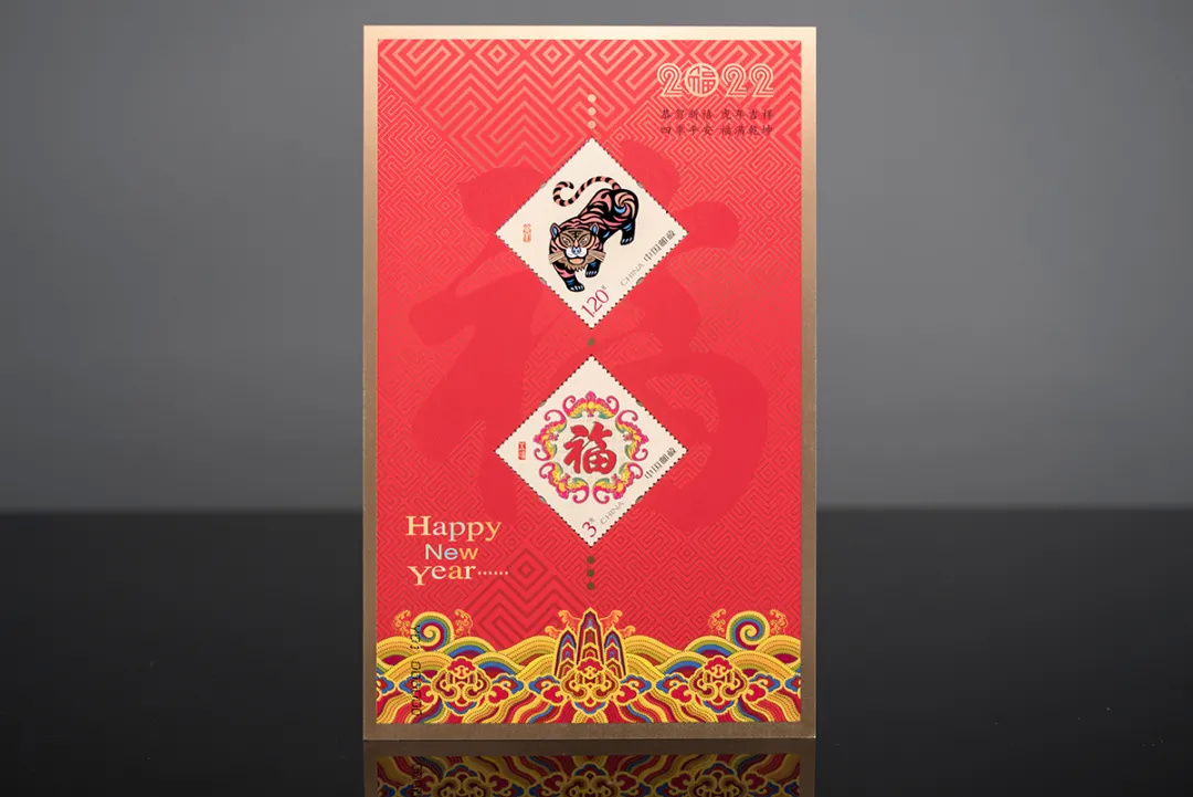 注:采用“壬寅大吉”和“五福临门”邮票印制小全张1枚,规格为120毫米×190毫米。小全张专用于2022年中国邮政贺年有奖产品(祝福卡型15元)。