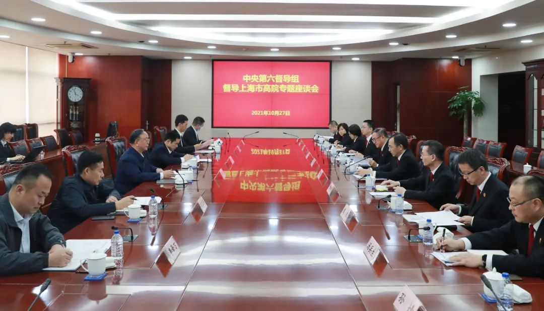 10月27日,全国政法队伍教育整顿中央第六督导组副组长杜万华、中央第六督导组上海小组副小组长陈锋一行先后到上海市第二中级人民法院(以下简称上海二中院)、上海市高级人民法院(以下简称上海高院)下沉督导队伍教育整顿工作。