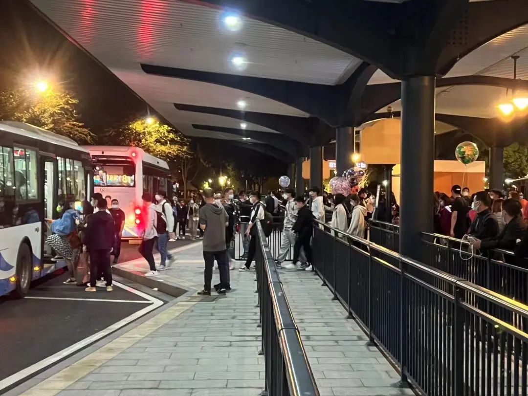 据悉,从20时15分开始,随着第一批完成核酸检测的游客走出园区,疏散工作正式启动,把游客送往龙阳路交通枢纽。截至23时45分,疏散游客1万多人。