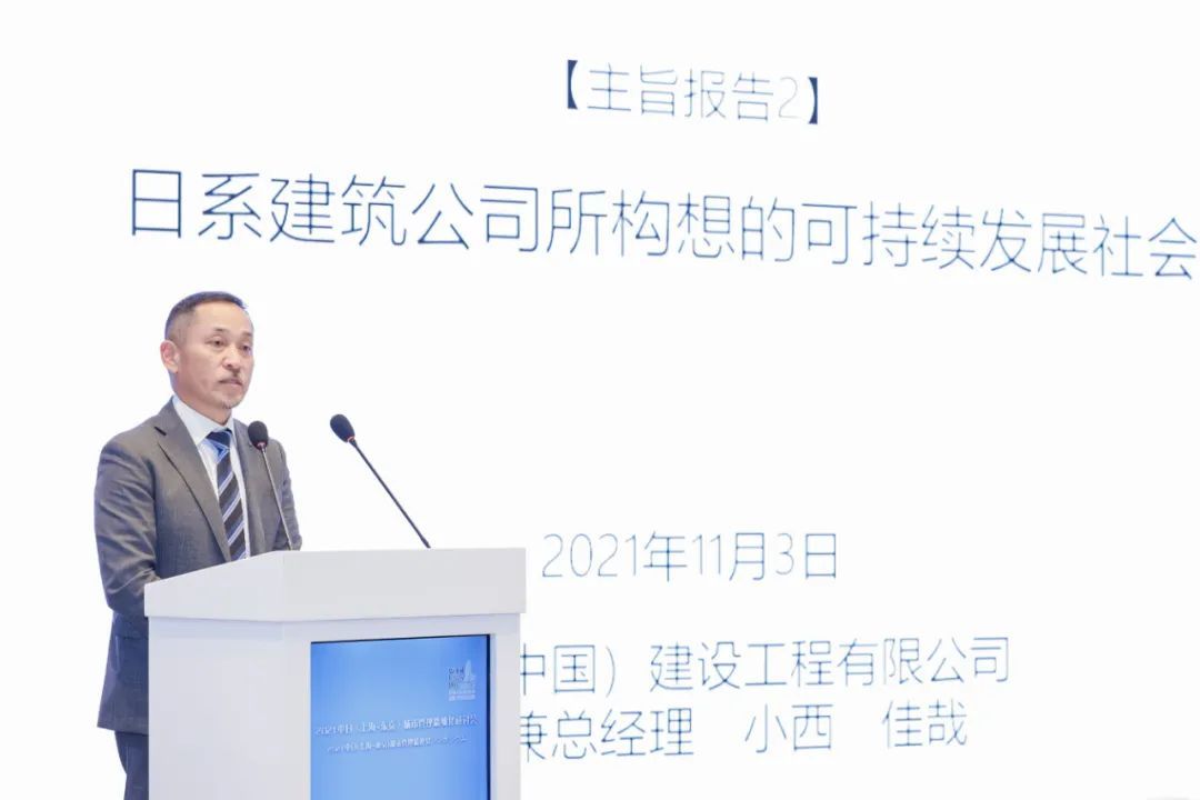 竹中(中国)建设工程有限公司董事兼总经理小西佳哉通过3个竹中建设在日本推进的具体事例,分享了日系建筑公司所构想的可持续发展社会。