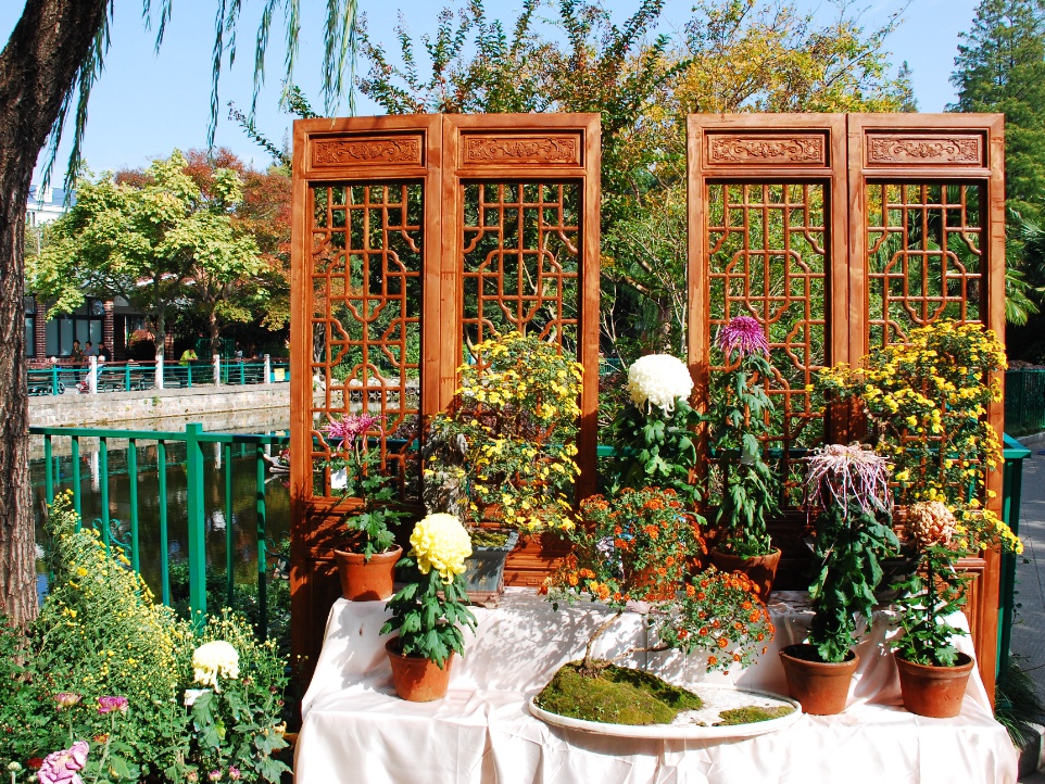 本次菊花展展出了独本菊、多头菊、山石菊、大花菊、球菊等10个大类、近200个品种。相比往年,今年的菊花展还增加了室内插花花艺展示。缤纷多彩的菊花与曲水园小巧玲珑、水石相映的园内空间巧妙融合,让游客可以充分体会到江南园林的独特魅力。