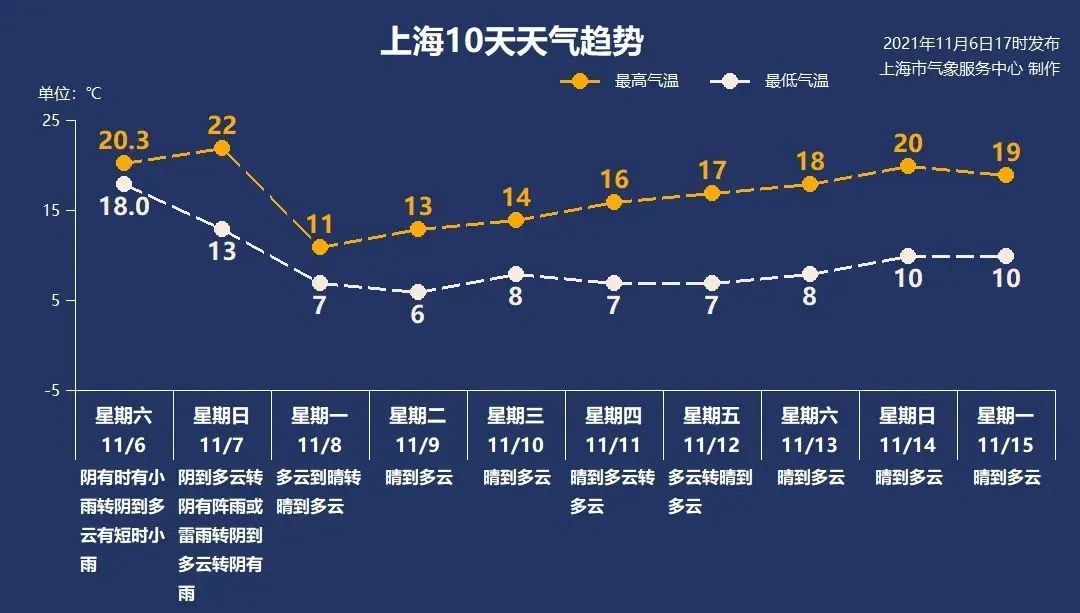 上海此轮降温的极端最低将出现在明后两天(8-9日),最低气温市区跌至6℃-7℃,郊区4℃-5℃,并伴有7-8级偏北大风,强降温叠加大风的影响,冷意倍增。