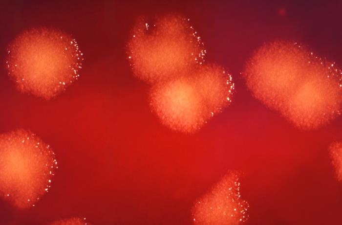在2.5倍显微镜下,近距离观察培养皿上培养的炭疽芽孢杆菌菌落,图片来自于网络