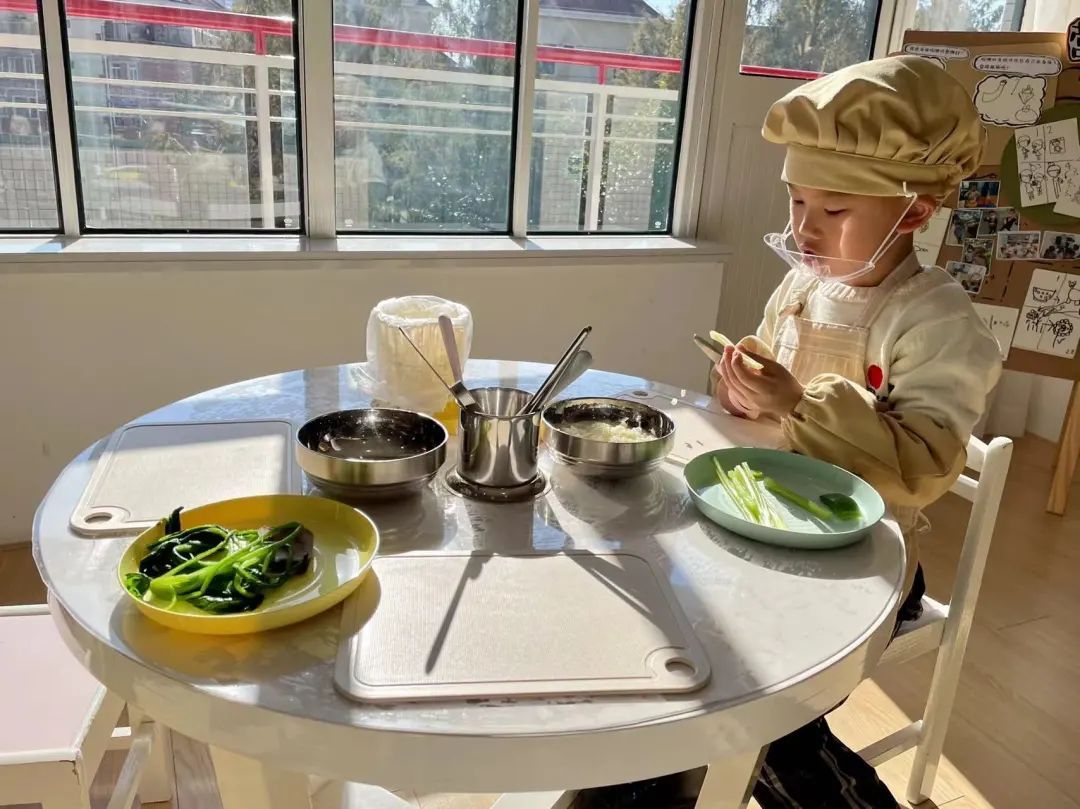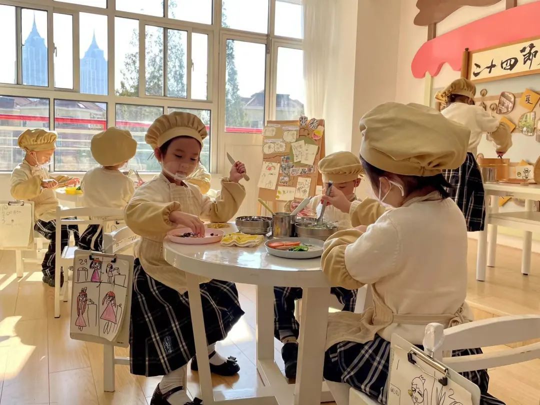 在上海市实验幼儿园里,到处都可以看见孩子们身着专业的工作服,为每一餐食物而忙碌的身影。