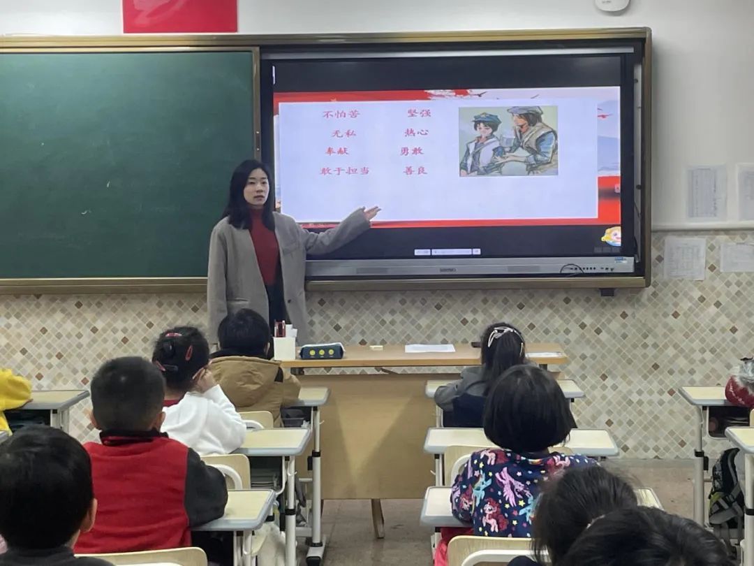虽然长征的历史已经有些遥远了,但在二(6)班上,授课教师翁凯悦用《一袋干粮》的故事让孩子们更形象地了解在那段艰苦岁月中发生的故事。孩子们睁大眼睛,听得津津有味。通过翁老师对红军长征故事的主人公精神的讲解,孩子们对长征的起因和过程都有了了解。