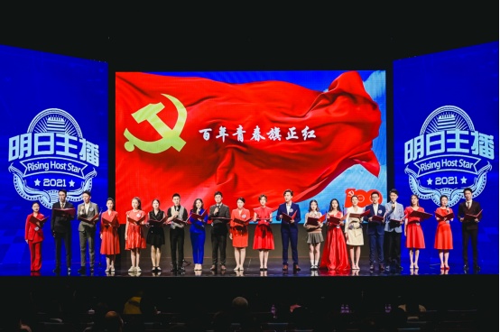 决赛开场,20位选手集体朗诵了诗人傅亮为本届大赛专门创作的诗歌《百年青春旗正红》,主题鲜明,气势磅礴。