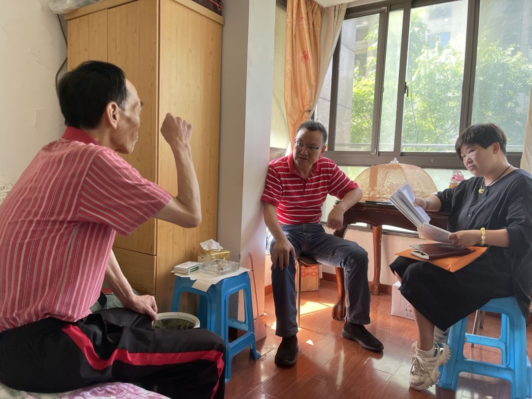 通过入户访谈,摸排走访,我们了解到一位81岁的刘老伯与家人失去联系已经20多年了,20多年来一直是好心的梁氏夫妇在照顾。老人目前失智状况明显,小便失禁,有严重听力障碍,在日常生活中只能用简单的手势与人进行交流。了解到老人想寻找亲人的诉求后,“社区救助顾问”第一时间制定了帮扶计划,并联合多部门,通过调阅档案。查询户籍、筛查姓名等方式,终于寻找到了老人的亲属。老人的亲属激动的握着我们的手“千言万语都无法表达我们的感谢,太感谢你们了!”