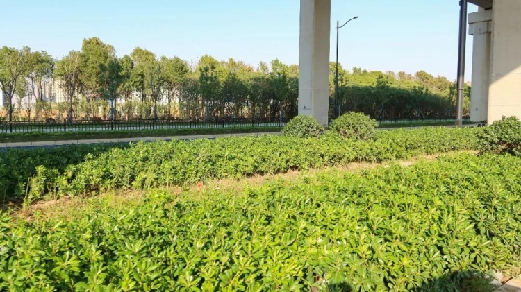 目前桥下绿化工程还未能体现景观效果,待工程完成,经过1-2年的生长,就能看到爬山虎沿桥墩盘旋而上的场景。