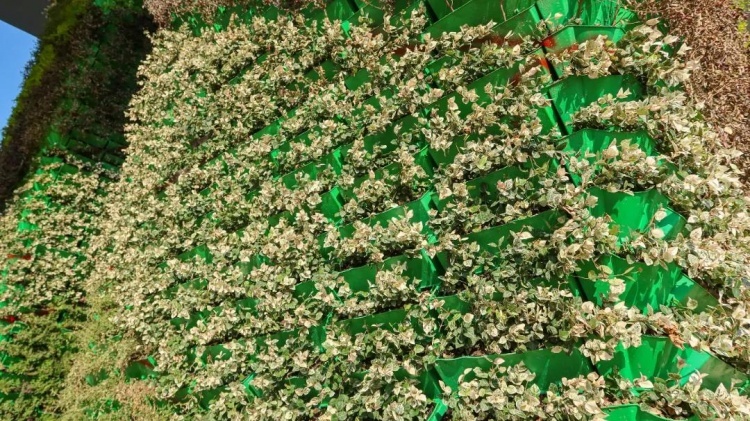 此次垂直绿化不但提升了该区域的景观档次,而且与附近的绿化带融为一体,打造出了一条具有植物景观特色、简洁大气的城市快速化道路景观大道。