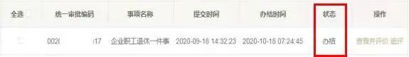 我们公司老李这个月到达退休年龄了,我月初已经通过“退休一件事”提交了老李的退休申请,目前整体业务的办件进度显示为“受理”。这是还没办结吗?