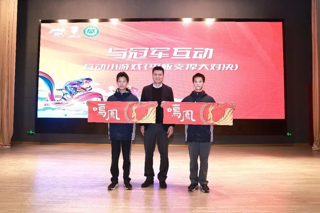 活动现场,自行车奥运冠军钟天使、三人篮球全运冠军成员颜鹏登台与同学们互动。同学们纷纷发言,向钟天使和颜鹏提出了很多问题,两位冠军也结合自己的经验一一给与解答。此外,钟天使还与延安中学互赠纪念品留念。