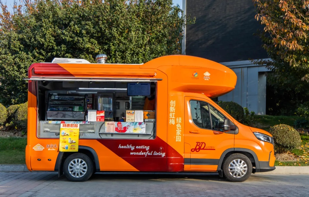 该餐车由上海良友金伴便利连锁有限公司营餐车分公司负责运营,运营时间是每天上午7点到10点,主要解决园区白领早餐难题。早餐车上绝大部分的商品来自光明集团旗下产品,各类商品售价也很亲民,从2至10元不等。包括包子、手抓饼、饭团、寿司、三明治、沙拉、便当、粉面等餐品。夏天还供应光明旗下的各式冷饮。考虑到大部分消费者比较喜欢现制的早餐,餐车在这方面有突破,增加了现制的手抓饼、锅盔等品种。针对白领客群还推出了备受他们青睐的豆浆、咖啡等。