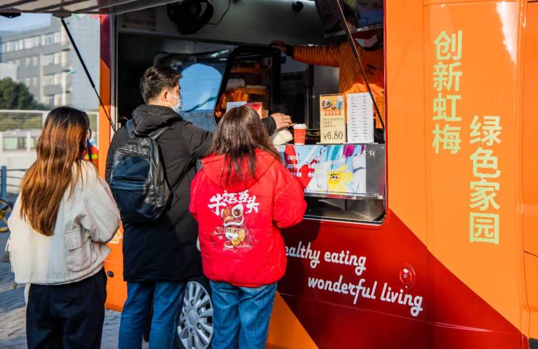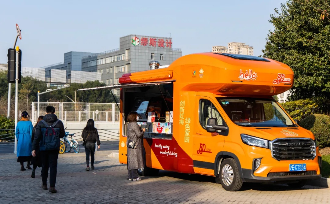 当然看到啦!听说这个是虹梅街道专为我们企业员工提供的“早餐车”!我今天的早饭就是在那里搞定哒!包子、三明治、寿司、咖啡……应有尽有哦!味道也超级好!