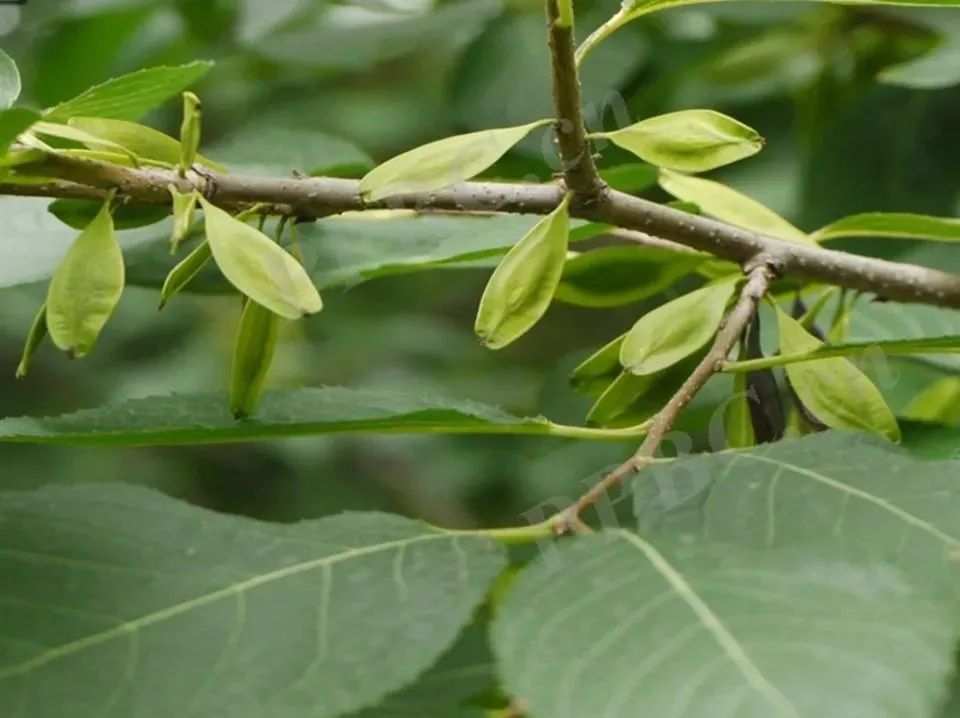 tips:在野外,如果你要识别这种植物是不是杜仲,可以将其叶子拉断,如果看到有“藕断丝连”一般的粘连丝线,这些丝线其实就是杜仲的胶丝。这可以作为辅助识别杜仲的一大要点哦,你get了吗?
