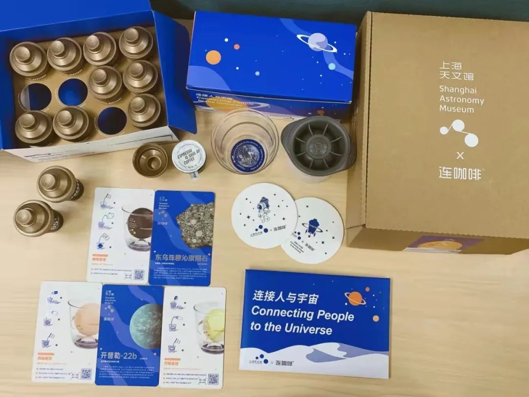 套装内除有咖啡主体外,还特别加入了与天文馆相关的视觉及文创产品元素,并奉送了开馆纪念咖啡杯垫及星球咖啡杯。