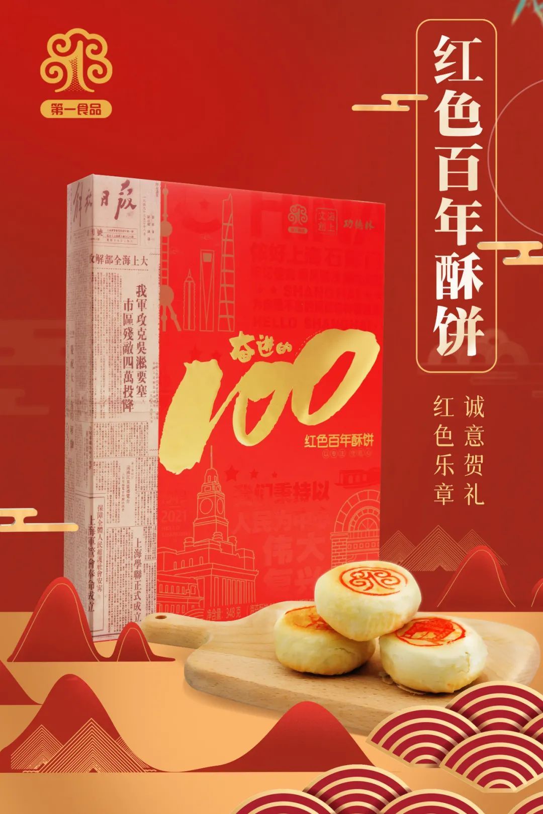 奋进的100红色百年酥饼