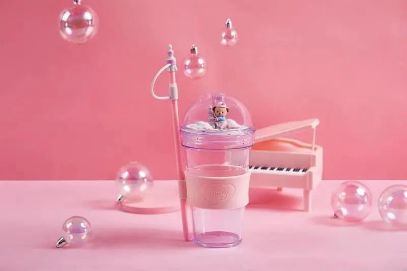 东方明珠、泰迪珍藏联名款景观吸管水杯兼具精致可爱与时尚潮酷两种风格,设计巧妙地结合了双方具有高识别度的东方明珠塔造型和泰迪熊身造型,包装添加了东方明珠塔外观经典菱形格元素、粉色系元素和未来机械感元素。