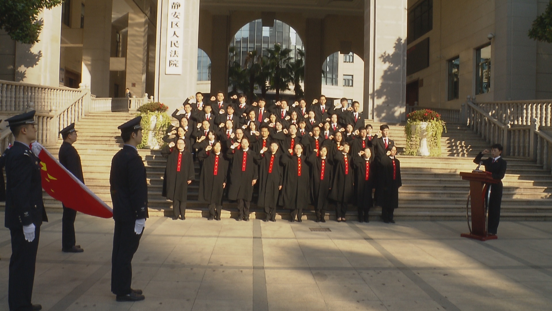 为进一步弘扬宪法精神,在12月4日国家宪法日到来之际,静安区人民法院组织开展宪法宣誓活动。静安法院党组书记、代理院长孙静领誓,新入额法官和新进公务员代表等参加了宣誓。