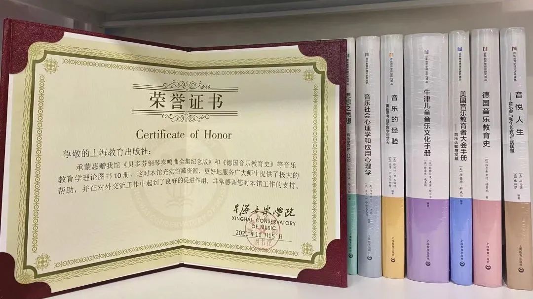“上海教育出版社——星海音乐学院图书馆赠书仪式”也将于同日举行,上海教育出版社赠《贝多芬钢琴奏鸣曲全集纪念版(贝多芬诞辰250周年)》、“音乐教育学理论研究译丛”与星海音乐学院图书馆。此次赠书不仅是对上教社与星海音乐学院之间的良好合作关系的纪念,也是对未来合作的企盼。