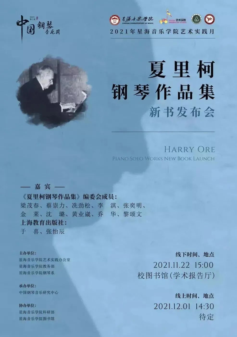 “小雪气寒而将雪矣,地寒未甚而雪未大也。”11月22日是小雪节气,沪上气温骤降,呵气成霜。上海教育出版社音乐分社副社长于喜、编辑张怡辰则抵温暖的广州,参与于星海音乐学院图书馆举办的“《夏里柯钢琴独奏作品集》新书发布会”,这场活动也将打响“2021年第二届中国钢琴音乐周”的第一枪。
