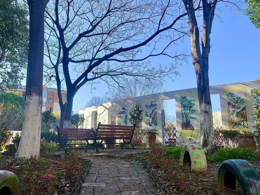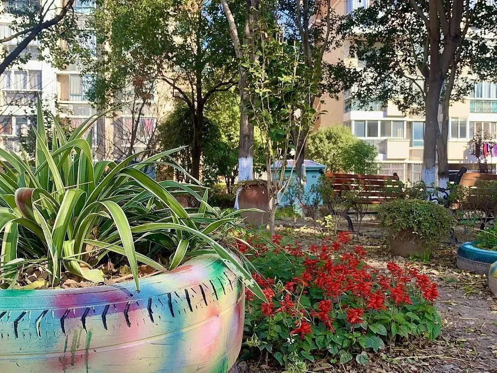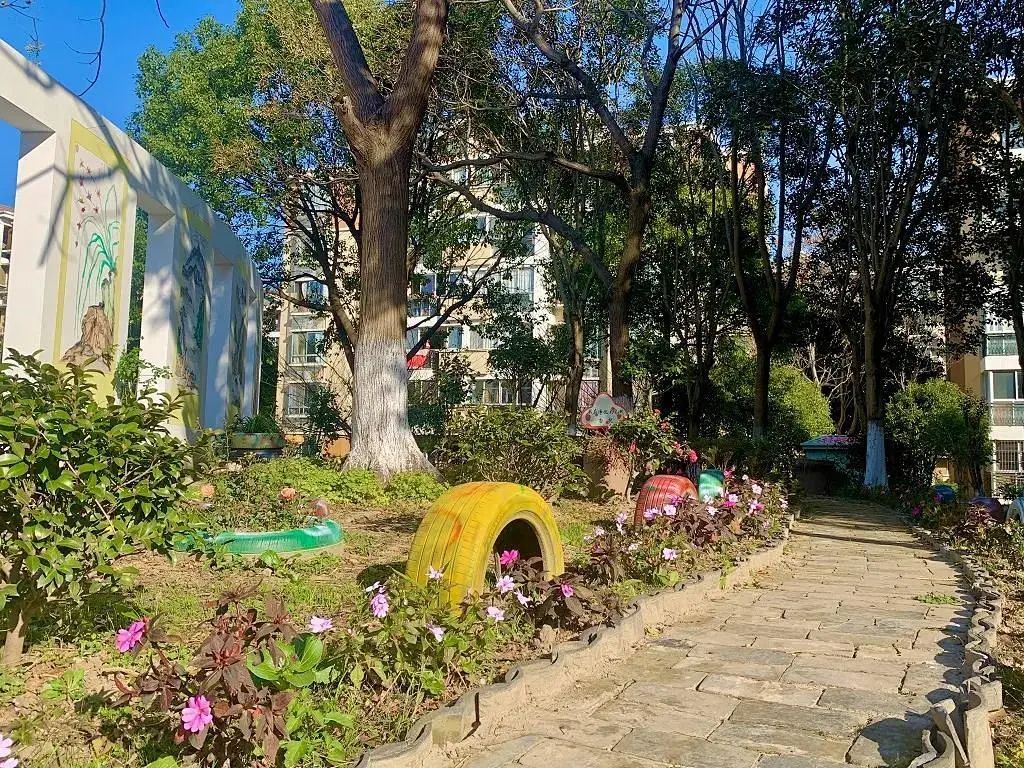 一个童享菜园,是孩子们实践种菜的小天地。一方小花园,可以散步、赏花、唠家常。