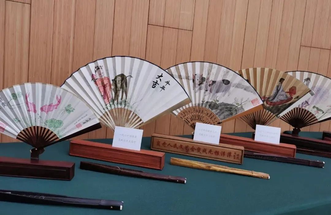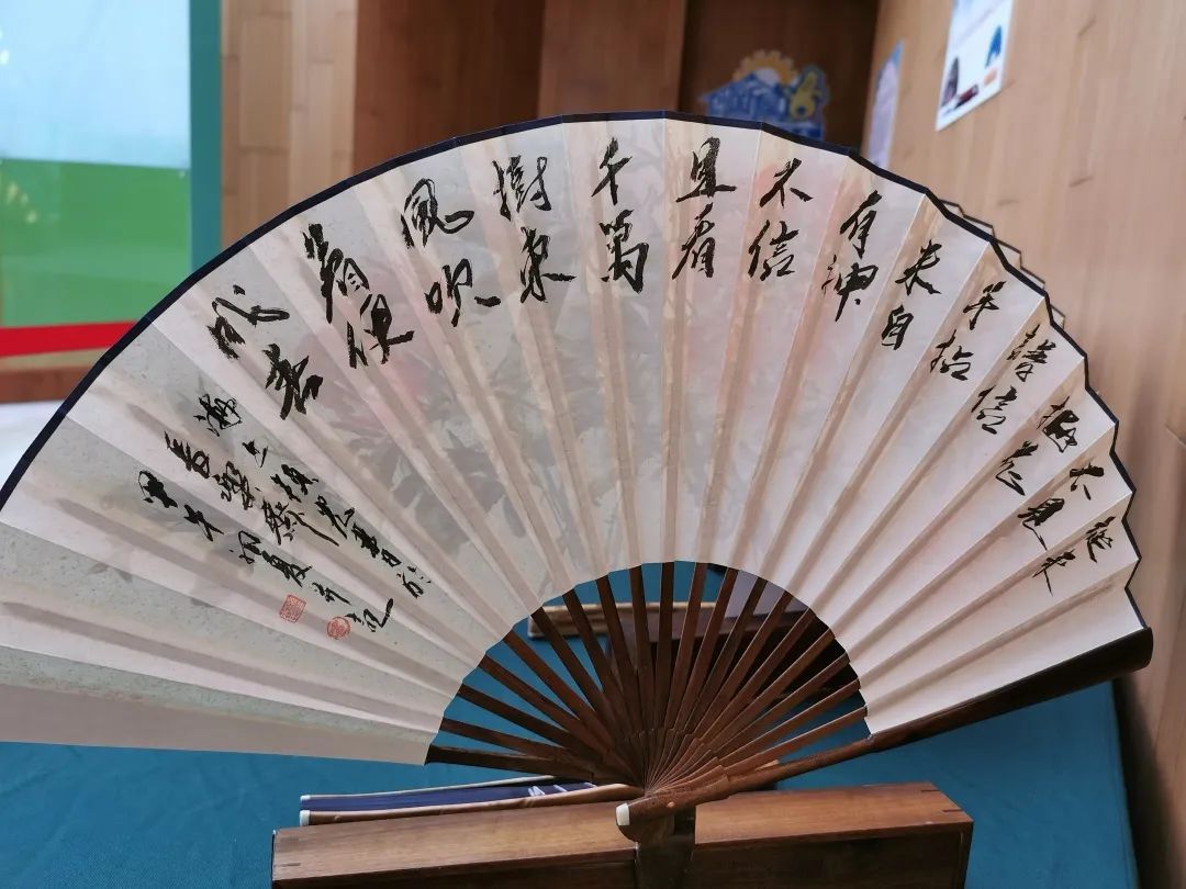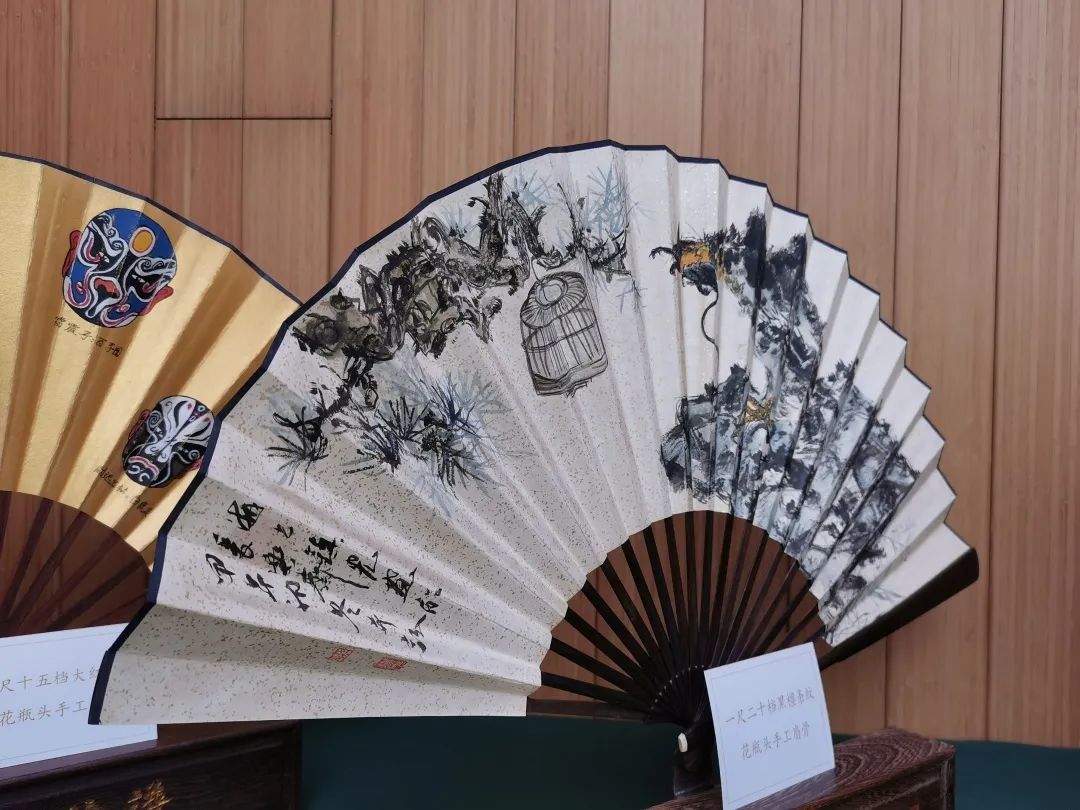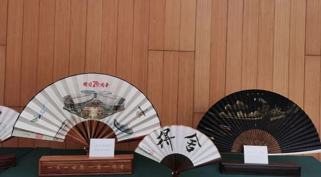 “折扇”在我国有悠久的历史和传承,也是我国瑰丽多彩的非物质文化遗产之一。此次展览上的折扇作品由上海市民间文艺家协会会员、上海收藏家协会会员、上海发明家协会会员朱镇虞亲手制作,每一把折扇都含有特殊的意义。