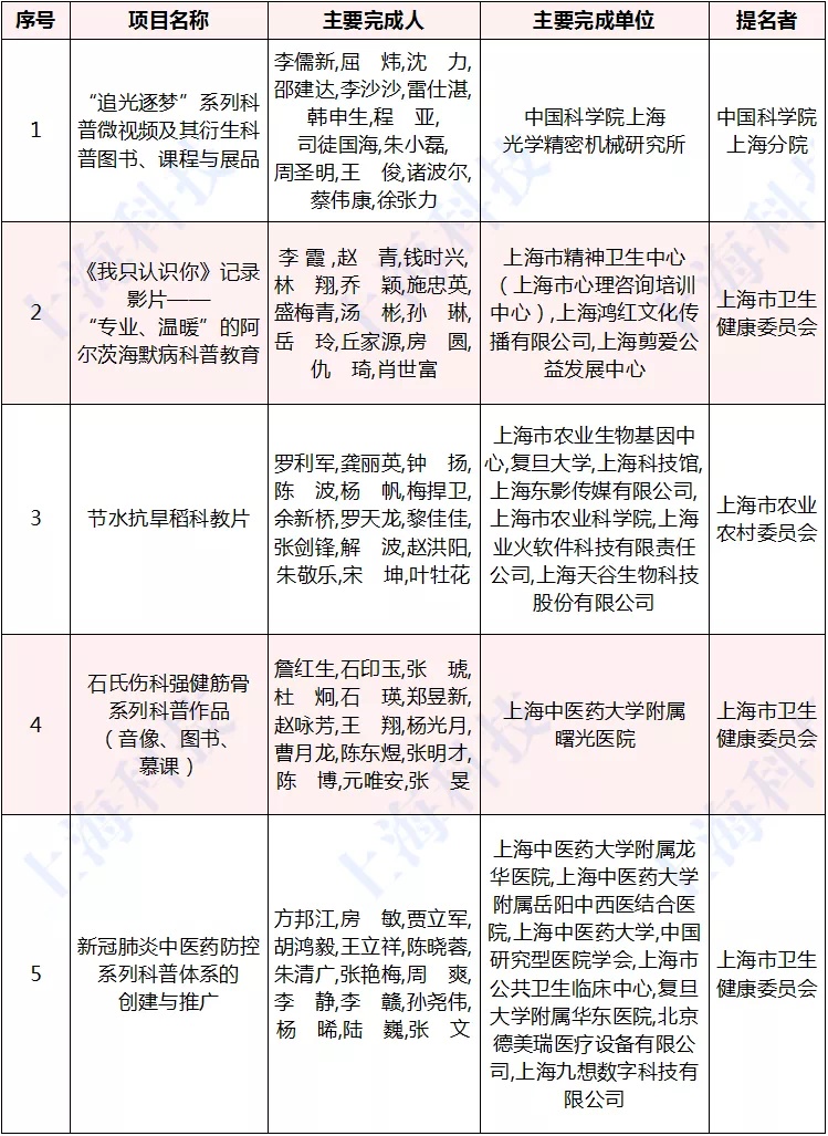 2020年度上海市科学技术奖励大会12月1日召开。今年5月,中国上海网站公布了《上海市人民政府关于表彰2020年度上海市科学技术奖获奖人员(项目)的决定》,共281项(人)获奖。