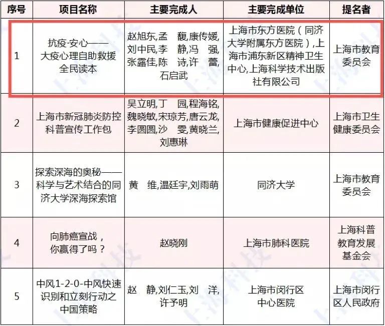 上海科学技术出版社《抗疫·安心——大疫心理自助救援全民读本》获2020年度上海市科学技术奖励大会科学普及奖二等奖!